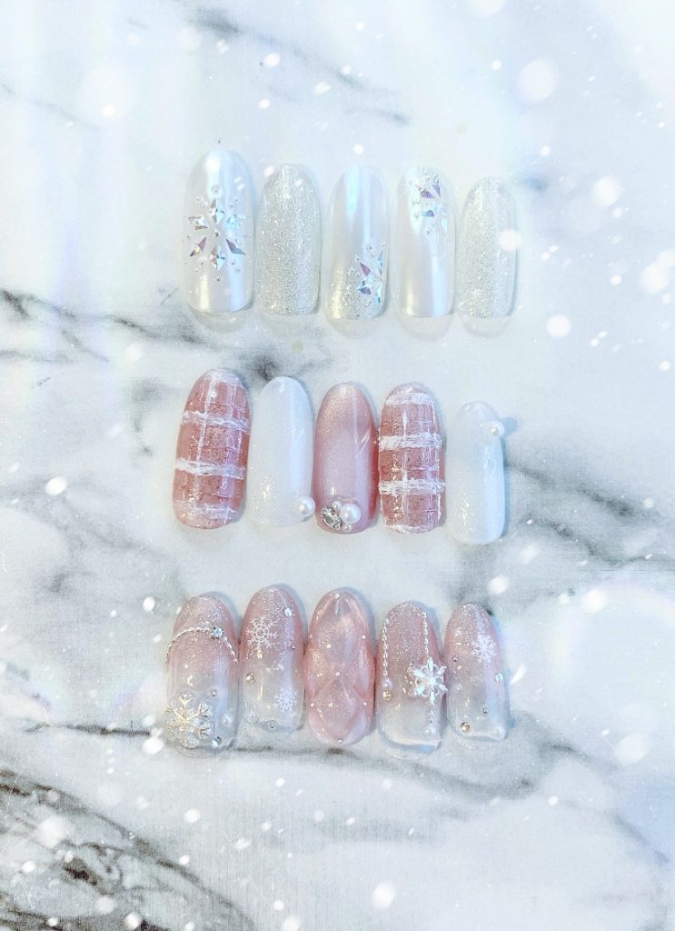 雪の結晶パーツが主役のマグネットグラデネイル(¥12,ぜひお試しくださいませ
