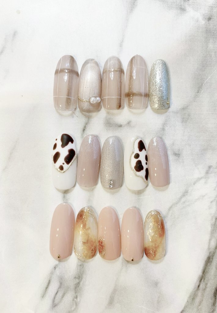 秋らしいアニマル柄に大人っぽいカラーリングを合わせたネイル(¥12,100→¥10,890)